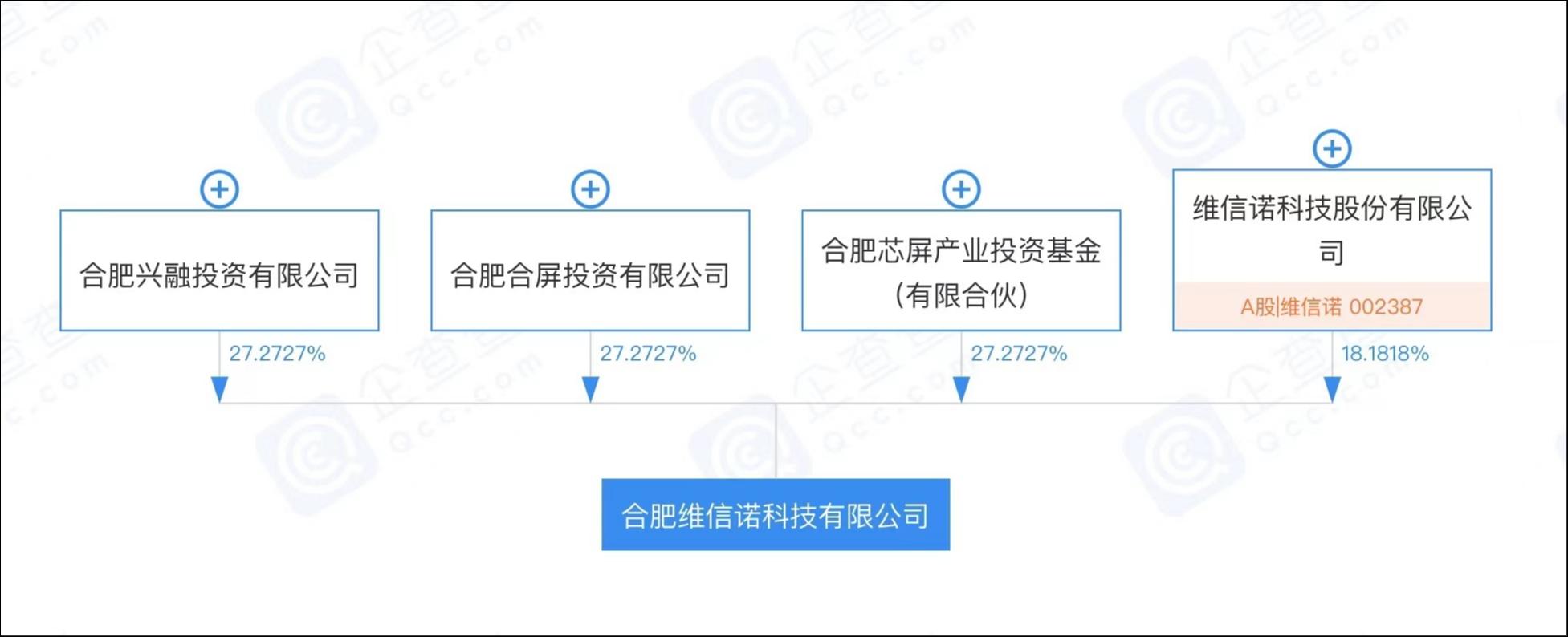早前在2018年11月,维信诺宣布与合肥市人民政府签署《合肥第6代柔性有矩阵有机发光显示器件(AMOLED)生产线项目投资合作协议》,共同设立了合肥维信诺,用于建立并运营一条第6代AMOLED生产线,设计产能为30K/月。协议约定,合肥维信诺注册资本220亿元,其中合肥市政府下设的3个子公司(合屏公司、芯屏基金、兴融公司)合计出资180亿元,维信诺出资40亿元。彼时维信诺持有合肥维信诺18.18%股权。