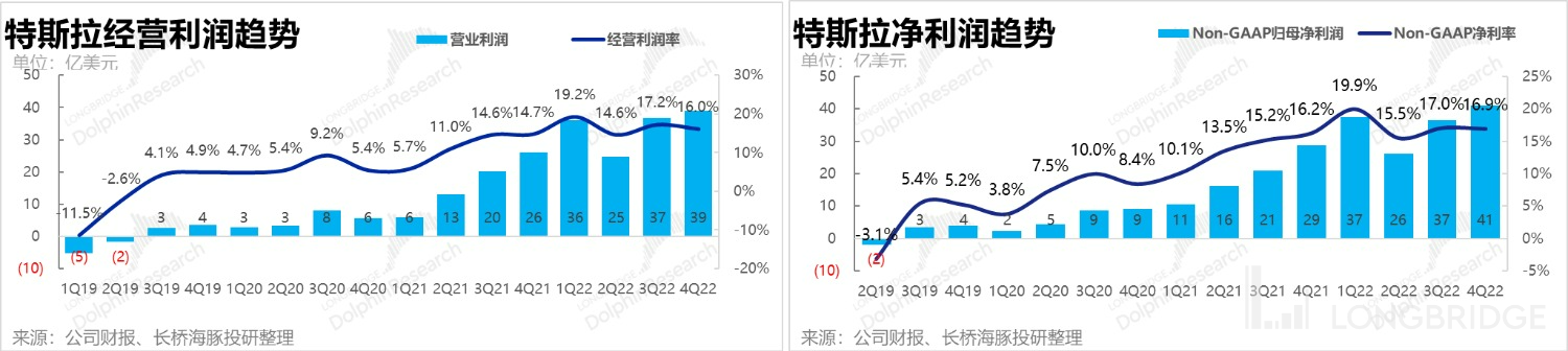 1.2 利润不够高,责任在降价。2022 年四季度实现经营利润 39 亿美元,同比增长 50%,从上季度接近 85% 的增速上继续滑落。
