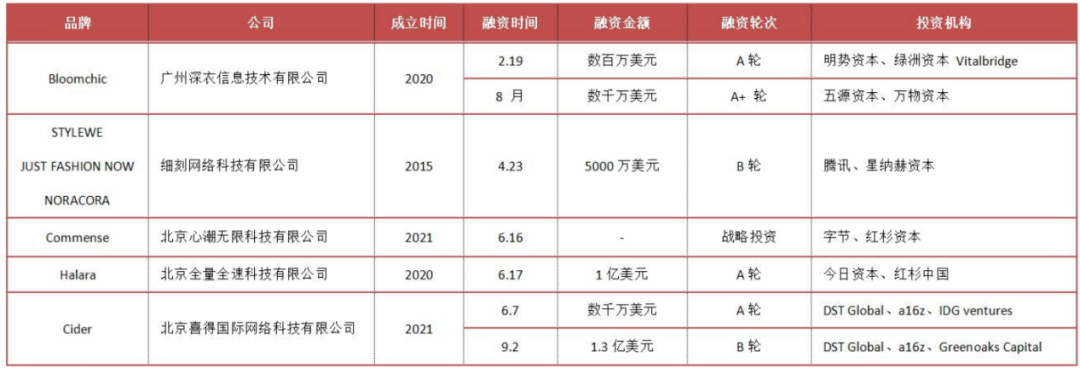 2021 年获得融资的女装快时尚品牌