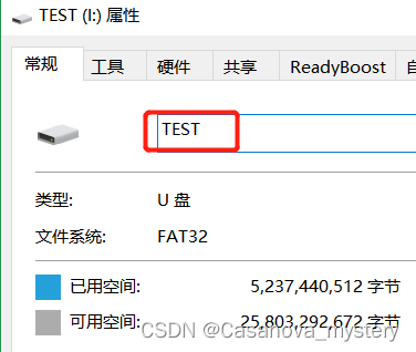 - 修改U盘卷标名称,必须修改为大写的“TEST”