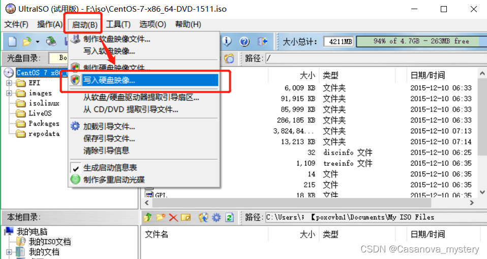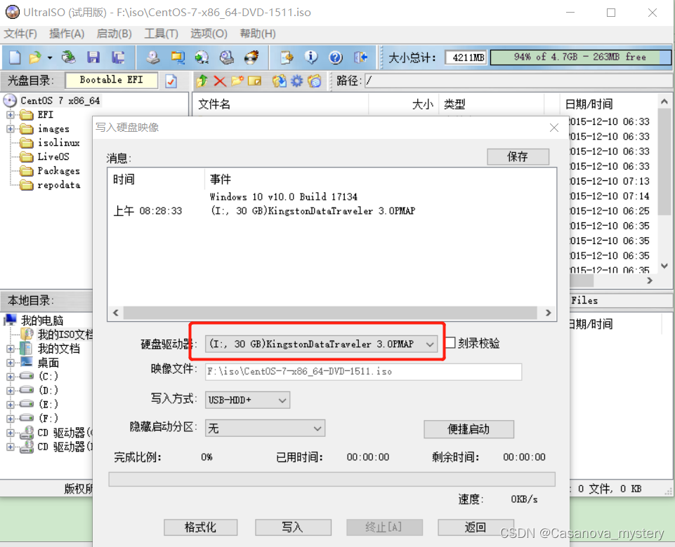 - 打开刻录软件,选择光盘镜像文件,点击”写入硬盘映像”,以下是刻录过程的截图