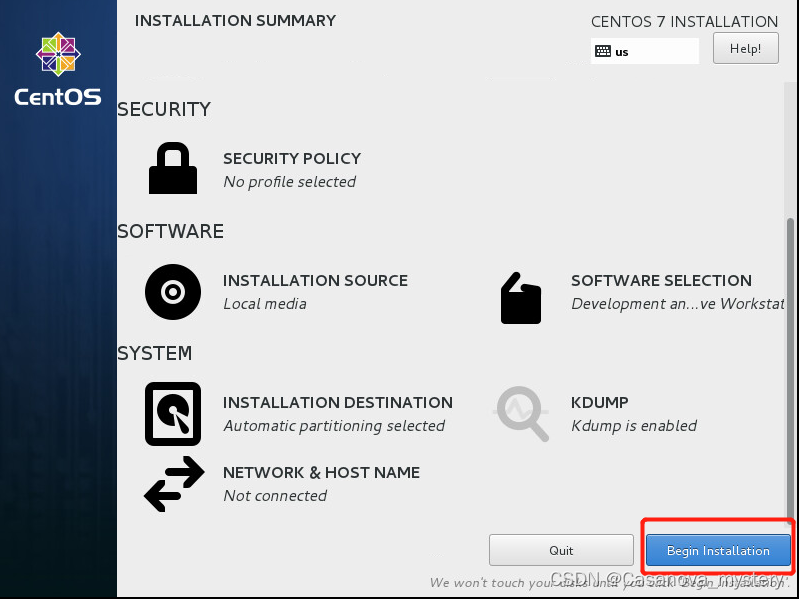 6. 然后选择Begin Install,开始安装