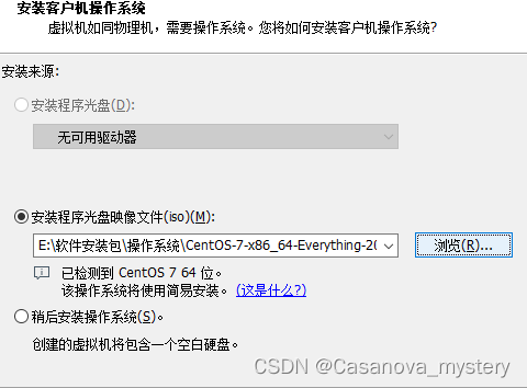 一直下一步,直到点击浏览选择你下载好的系统镜像文职