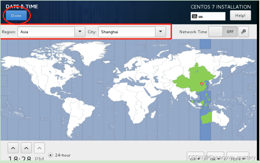 选择时区Region选Asia;City选择Shanghai,选完点击Done
