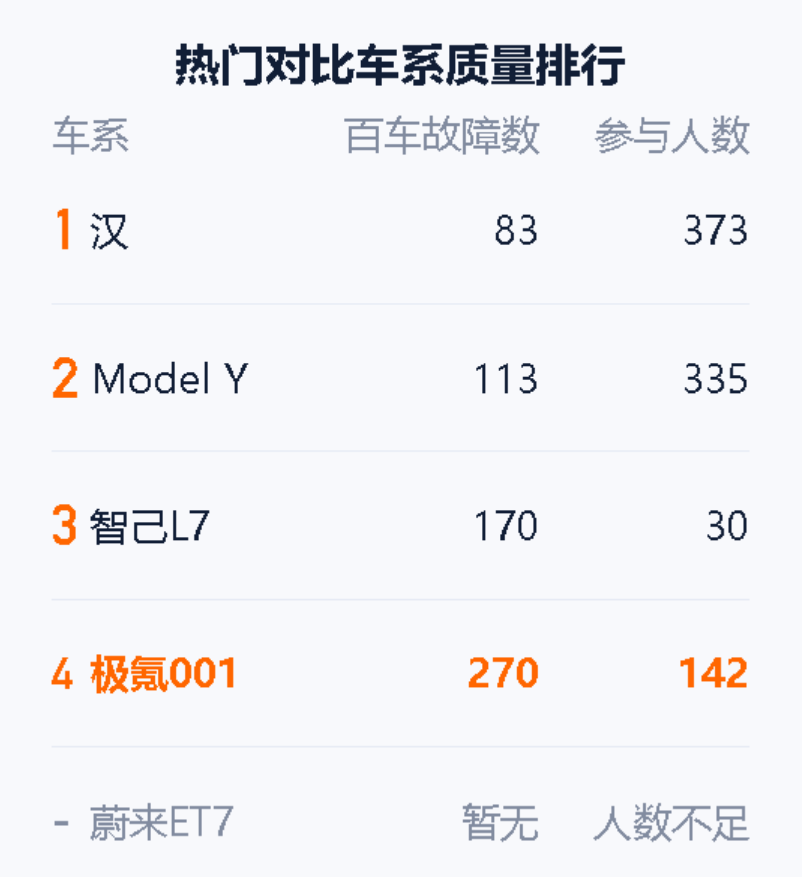 另一边,汽车之家所公开的数据显示,极氪在故障数和产品质量细节上也表现不佳。受此影响,今年1月,极氪交付量回落到3116辆,同比降低11.73%,环比下滑72.51%。