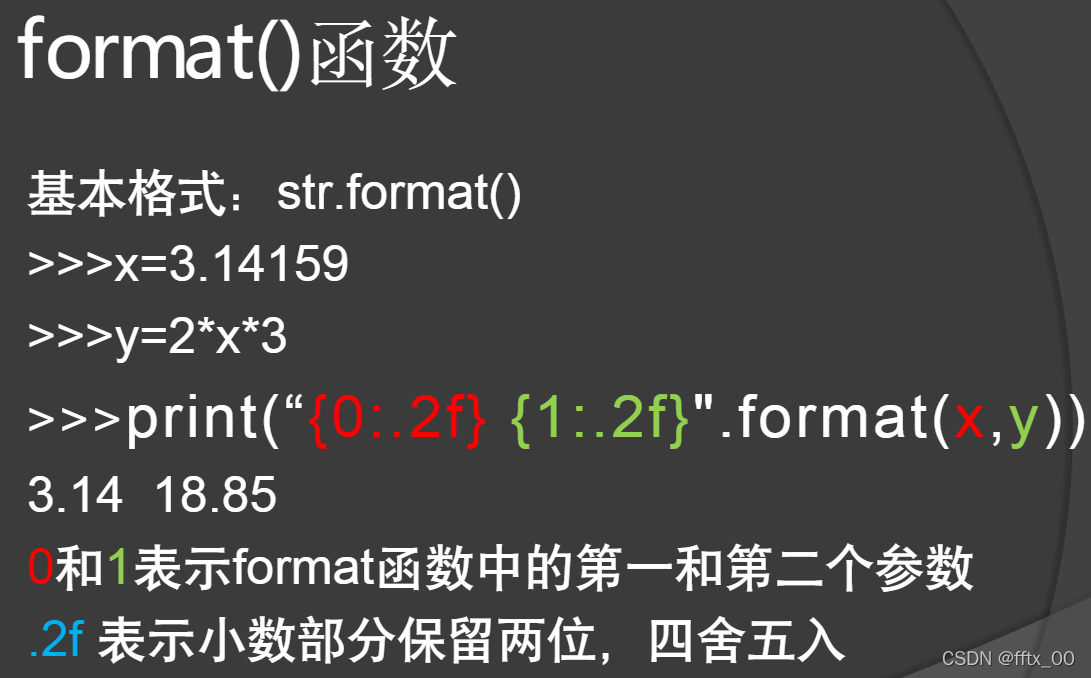 print('{0}'.format(3.555)).4f表示格式化为实数,保留4位小数