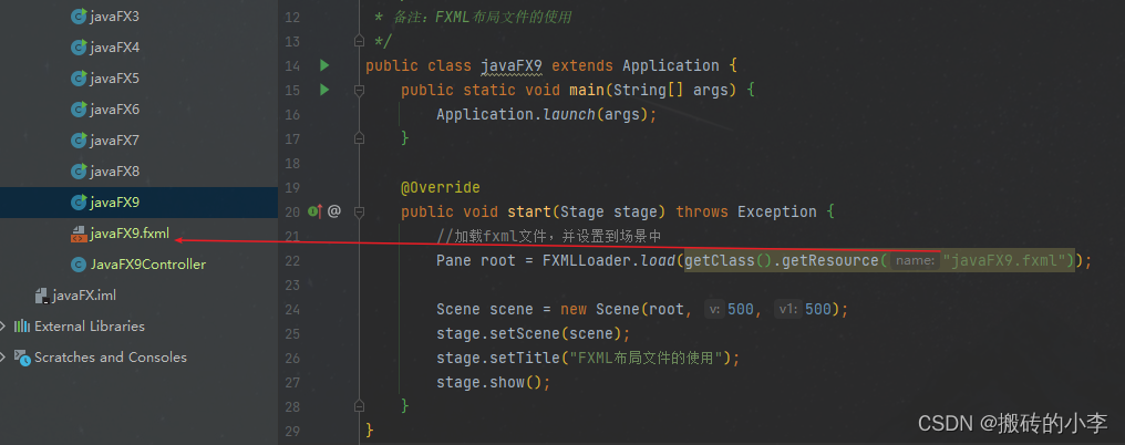 1、主方法的start方法中加载fxml文件,并放置场景中