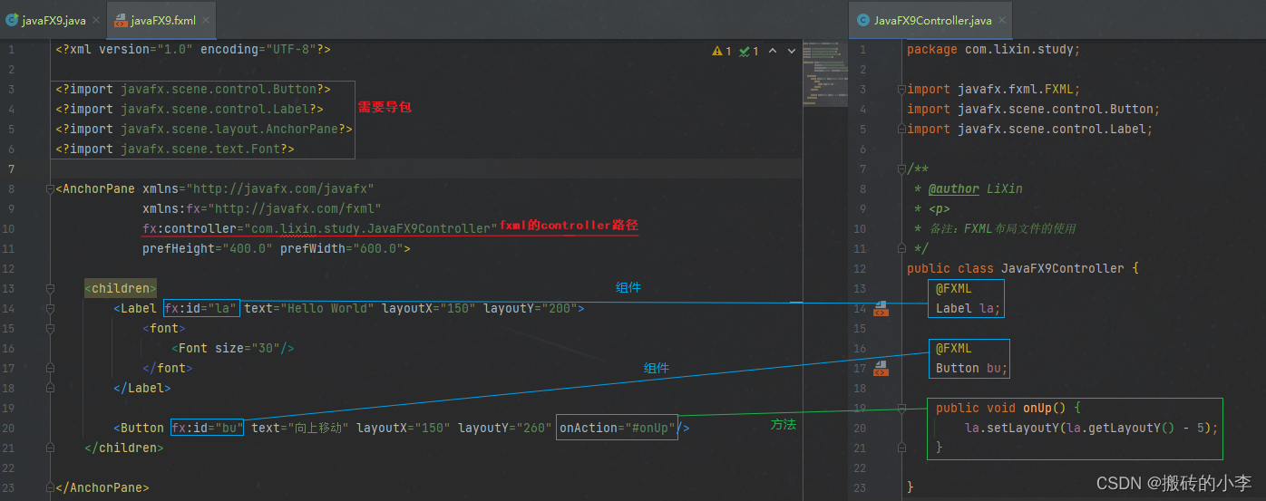 2、fxml文件的配置和Controller配置组件属性和事件方法