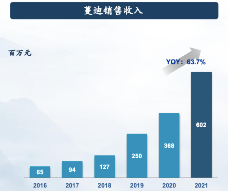 以目前市占率超70%的蔓迪为例,推出十几年来,一直不温不火,直到2019年才开始爆发性增长,销售额由2019年的2.5亿元增至2021年的6.02亿元。