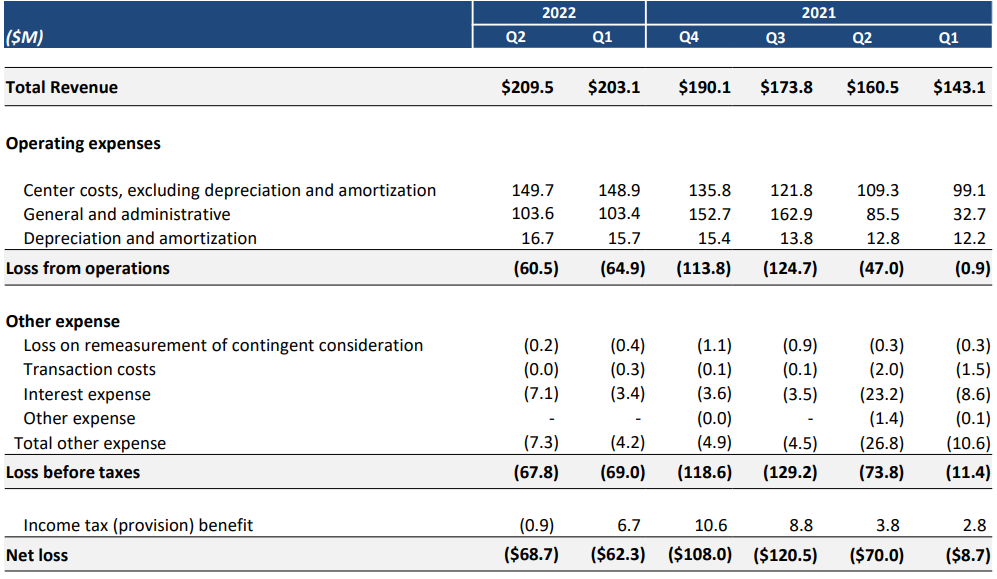 具体来看,从 2021 年 Q1~2022 年 Q2 这段时间里,Talkspace 只在 2021 年 Q3 这个季度里实现了 150 万美金的盈利,其他的几个财季,Talkspace 都是亏损状态。