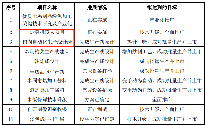 连锁餐饮也在转变思路,回归降本增效的本质,而不只是追逐“无人化”的先锋感。比如老乡鸡在招股书中便提到了炒菜机器人项目正在实施,扣肉自动化产线升级也已完成。