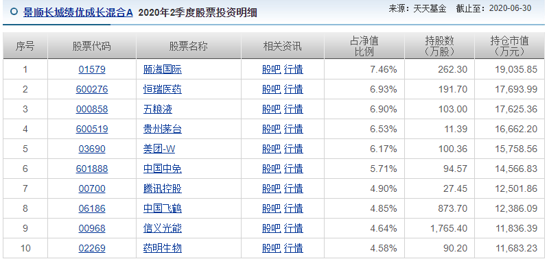 2020年一季度,这只基金前十中开始出现港股:药明生物、美团与腾讯控股(00700.HK)。当年二季度,前十中港股达到6只,净值占比高达32.6%,第一大重仓股是调味品生产企业颐海国际(01579.HK)