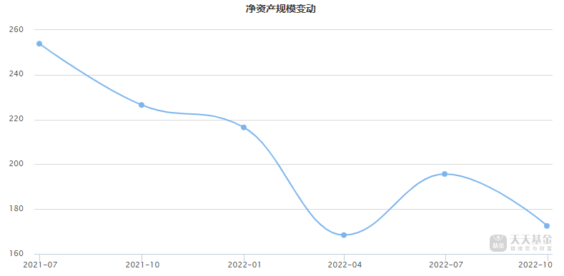 这只基金初始份额是28.985亿份,截至2022年三季度末48.0867亿份,净资产规模64.84亿。相较于2021年6月末的139.21亿,其净资产规模已经腰斩。截至2022年12月13日,这只基金近一年下跌20.43%。