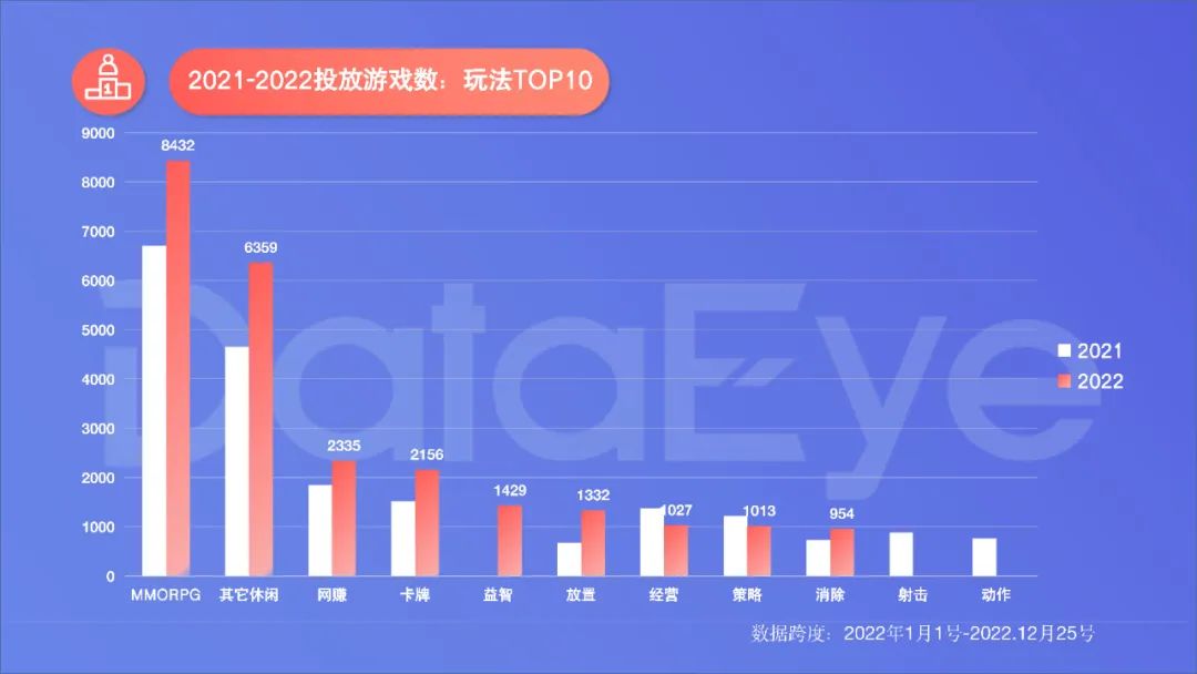 复盘了2022年国内移动游戏效果广告投放后,DataEye研究院发现: