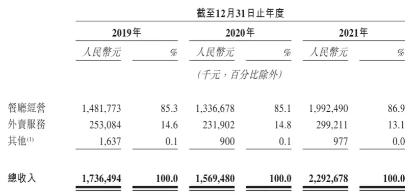 公开资料显示,绿茶餐厅于2008年在杭州创立,以高性价比的“新中式融合餐饮”定位,主营西式餐饮与中国经典传统美食相结合的特色菜品。后于2010年和2011年,绿茶餐厅先后在北京、上海分别开设第一家餐厅,打入一线城市。招股书显示,2018年至2021年,绿茶餐厅的营收由13.11亿元增长至22.93亿元。