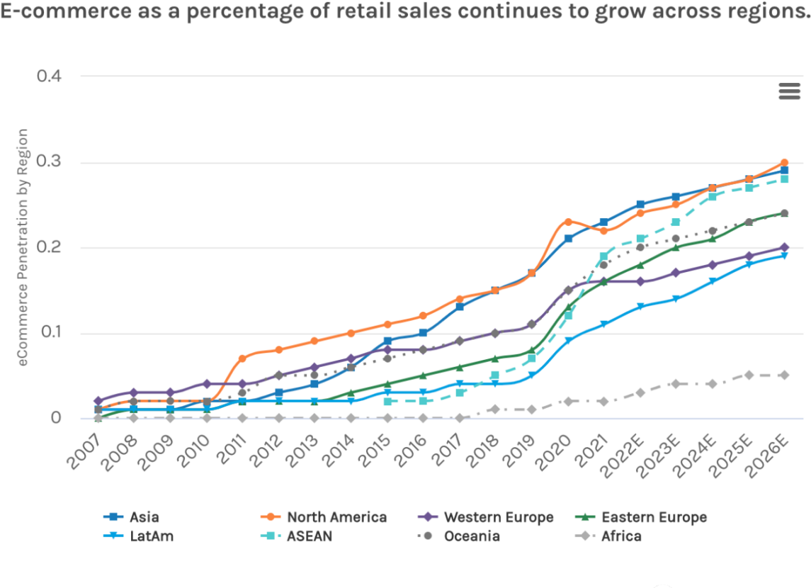 据Morgan Stanley最新研究报告指出,其对东南亚和拉美部分地区未来5年的电商增速做出了17%和20%的复合增长预测。东南亚作为全球电商的后发区域,仍有巨大的空间有待创业公司和资本去挖掘。