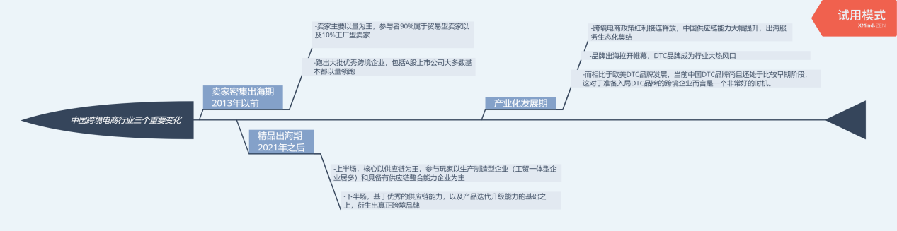那么,今天的DTC品牌到底处在一个怎样的阶段,现在进入该行业是不是好的时机,DTC品牌投放该怎么做?在解答这些问题前,我们先回顾下中国跨境电商行业发展经历的三个重大转变: