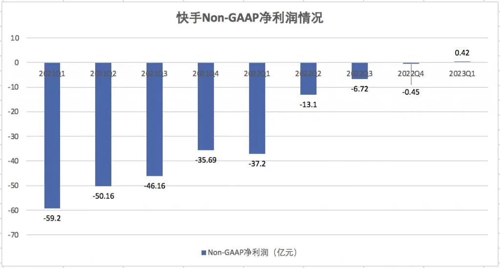 同样,快手也收获了“技术性”盈利。数据显示,2023年第一季度,快手经调整净利润达4200万元,首次实现了上市后的集团层面整体盈利。其中, “销售及营销开支”缩减了7.65亿元,同比减少8%,占总收入比例从2022年同期的45%降低至34.6%;雇员薪酬福利开支为 7.09 亿元,去年同期为7.82 亿元,同比减少 9.3%。