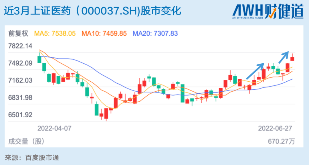 从近3个月的行业走势来看,上证医药(000037.SH)的走势较为直接地体现了行业“回血”态势。