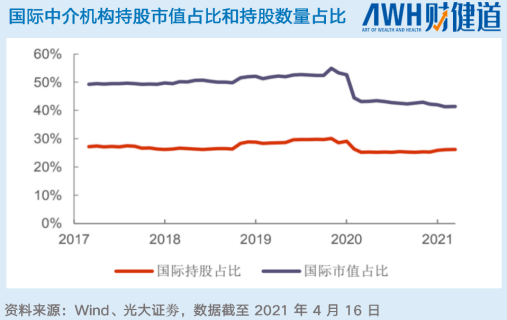 以港股18A为例,港股资本市场国际资本持股市值历来超过50%,其中又以美元和欧元为主,2021年疫情防控期间,国际中介机构持股占比下降,约低于40%。