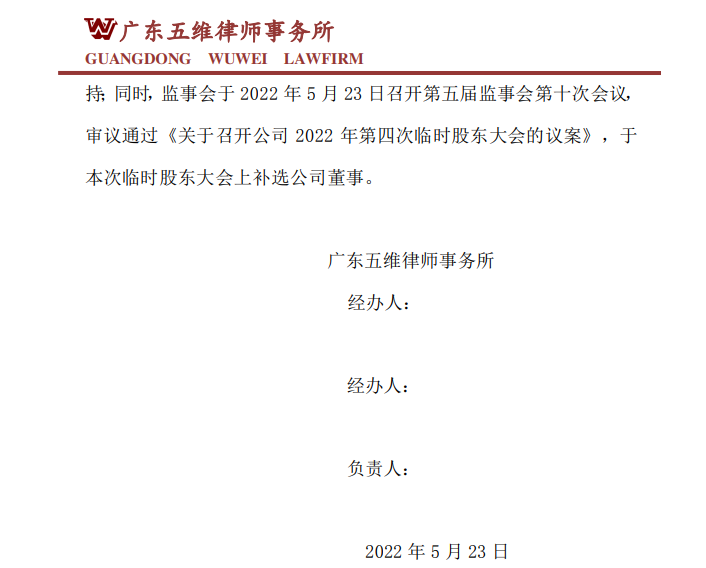 5月12日,深交所下发关注函,要求公司补充说明目前在职的董事人员、数量是否低于最低法定人数,并说明独立董事张从戬、董事张雨晨的辞职是否生效以及是否继续履行董事职责。