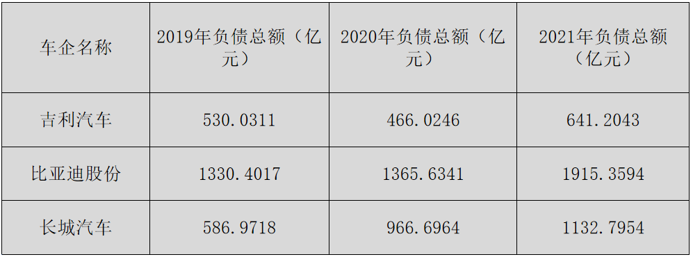 吉利汽车2019年负债是531亿元,2020年负债是466亿元,2021年负债是641亿元。