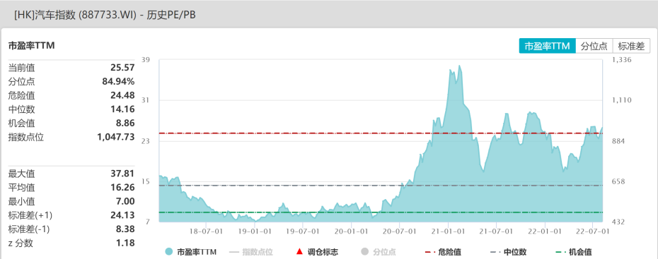 从港股汽车指数来看,该行业当前的估值是25.57倍,略高于危险值,但远高于14.16倍的中位数估值,处于比较高的位置。不难发现,吉利汽车当前30倍的估值是高于行业整体的。
