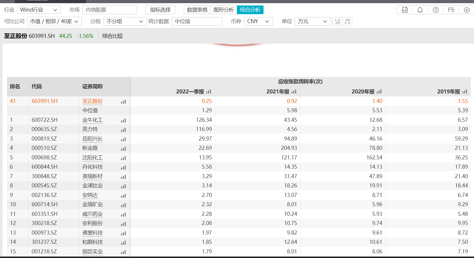 至正股份主营生产低烟无卤阻燃(HFFR)热塑性化合物和辐照交联化合物以及其他工程塑料、塑料合金、绝缘塑料。钛媒体APP注意到,在同行业,市值相近的40家公司中,其应收账款周转率排在末位,而存货周转率排在倒数第几位,有市场分析人士告诉钛媒体APP,从公司2021年财报及交易所监管工作函来看,公司经营的确陷入了困境。