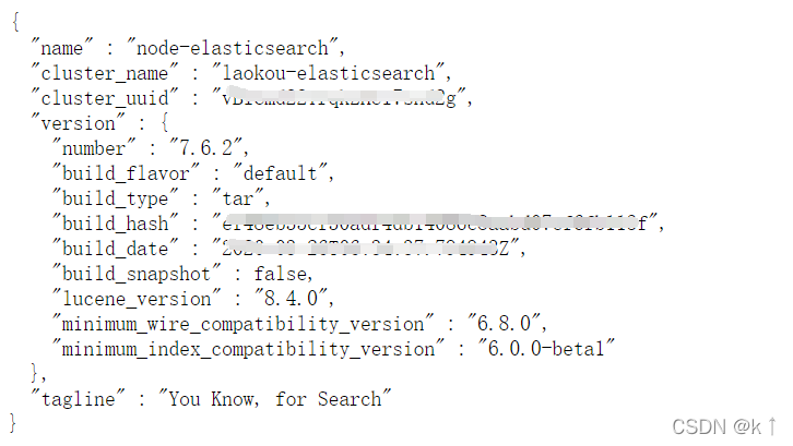 14.启动成功截图(在谷歌浏览器输入 -> http://ip:9200)