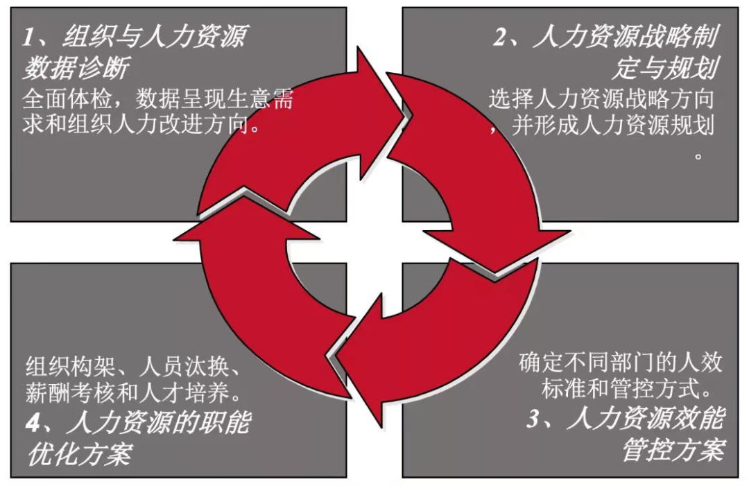 有了前面的步骤作为基础,人力资源职能优化的方向就很明确了,企业可以自行选择最适合自己的方向,铺排改进计划,按阶段逐步推进。