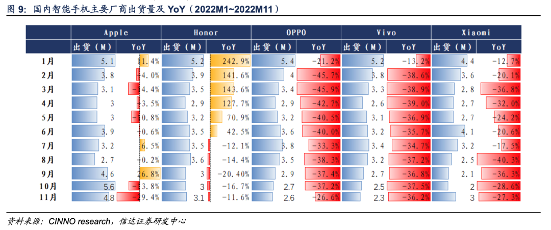 更残酷的是,2022年,中国智能手机市场出货量再次回落到3亿以下市场大盘: