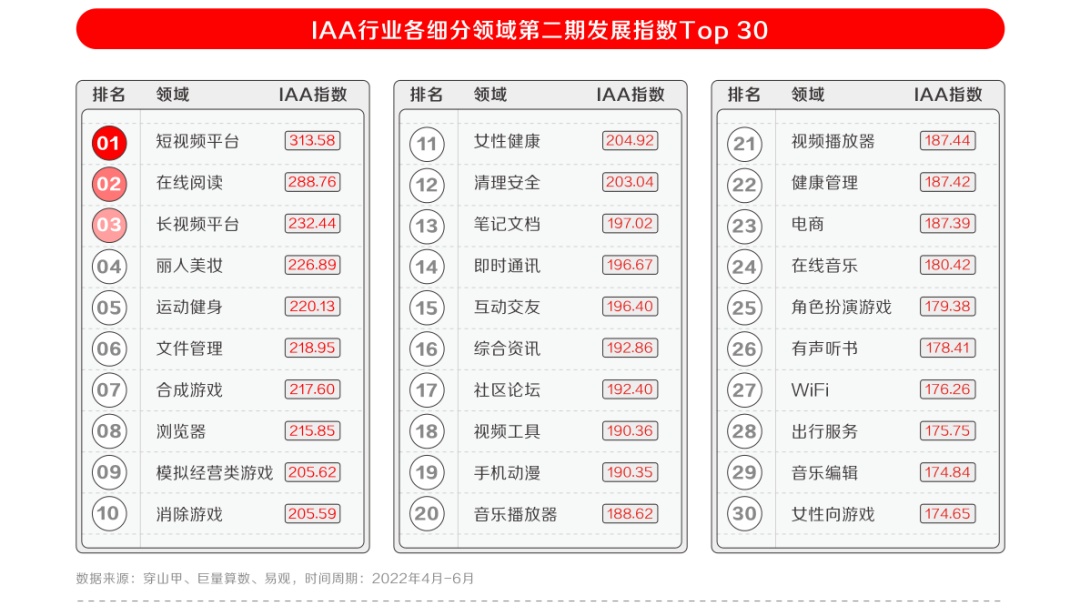 第二期IAA发展指数显示,游戏行业在本季度周期性回落,内容向品类实现排名跃升。