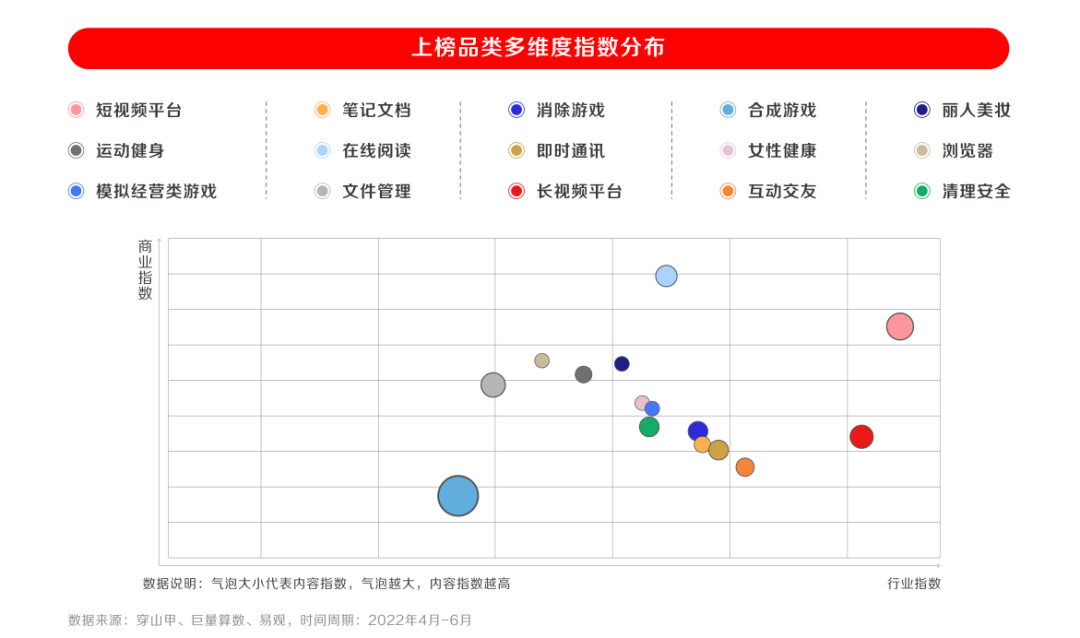 在本期研究中,游戏品类里玩法经典、休闲特征强的模拟经营类游戏、消除游戏发展稳定,广告收益可观的同时还有更多探索空间;合成游戏在内容方面的强势表现和融合化趋势值得关注。此外,运动健身作为行业成熟品类,在宏观长期利好之下仍有增长空间。