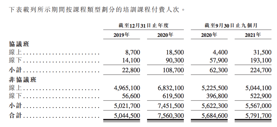 2019年、2020年、2020年1-9月和2021年1-9月的线上付费人次分别为600万人次、960人次、720万人次和730人次;对应的线上正价课付费人次分别为140万人次、180万人次、130万人次和210人次;虽然正价课付费渗透率有所提高,但受限于线上正价课人均400-500元的平均客单价,继续做大在线业务已并不划算,且难以有效贡献公司利润。