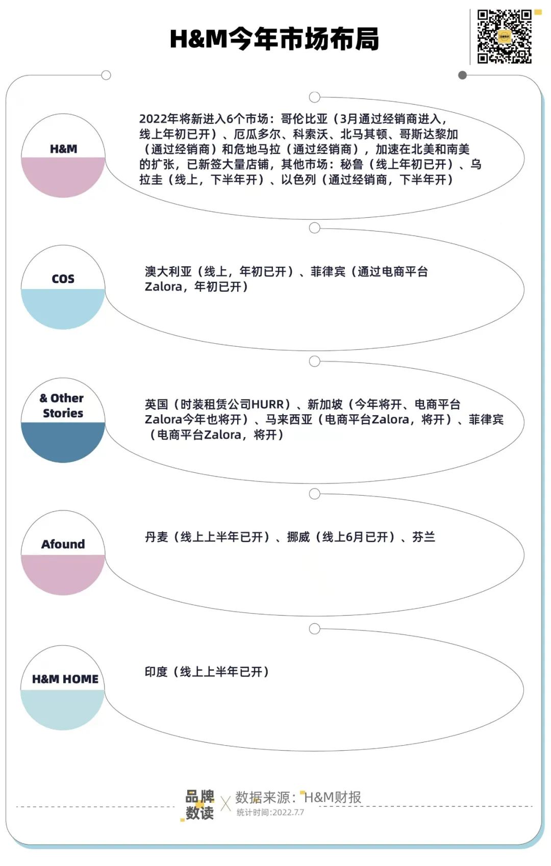对于全球性的快时尚集团来说,内地市场虽然带来过品牌辉煌,但也只是分散风险的一个地区,新市场的上位也可补全下滑市场的份额。例如,H&M集团正在全球寻找下一个增长市场,哥伦比亚、厄瓜多尔、科索沃、北马其顿、哥斯达黎加、危地马拉在H&M财报被重点强调,且明确提出了扩张计划,已签约大量店铺。