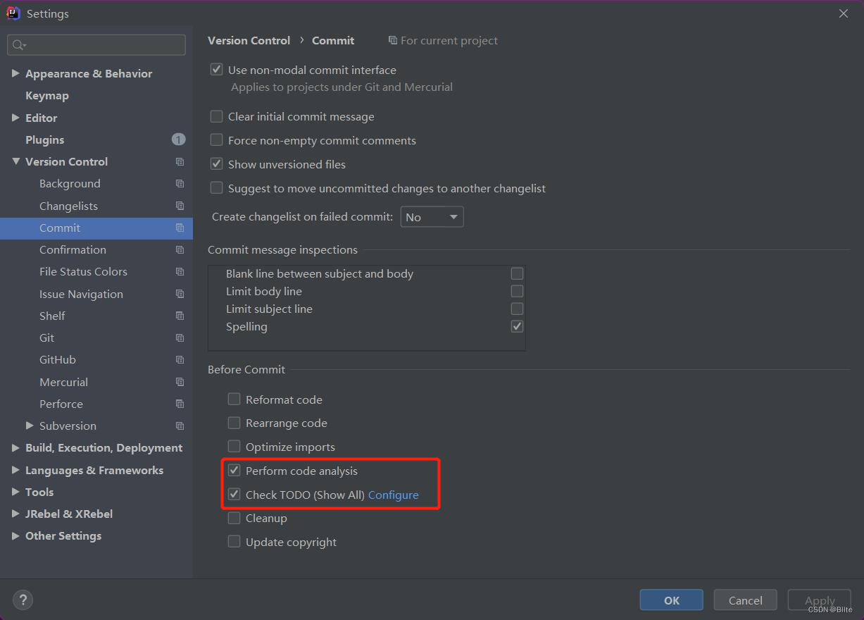 2.选择 Version Control --> Commit ,取消 Before Commit 下的两个选项(如下图)