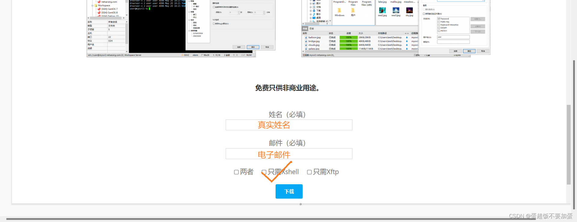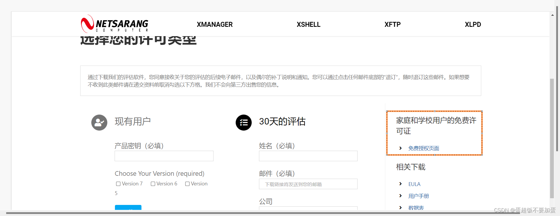 2.进入授权界面,填写姓名和邮件,选择只需Xshell