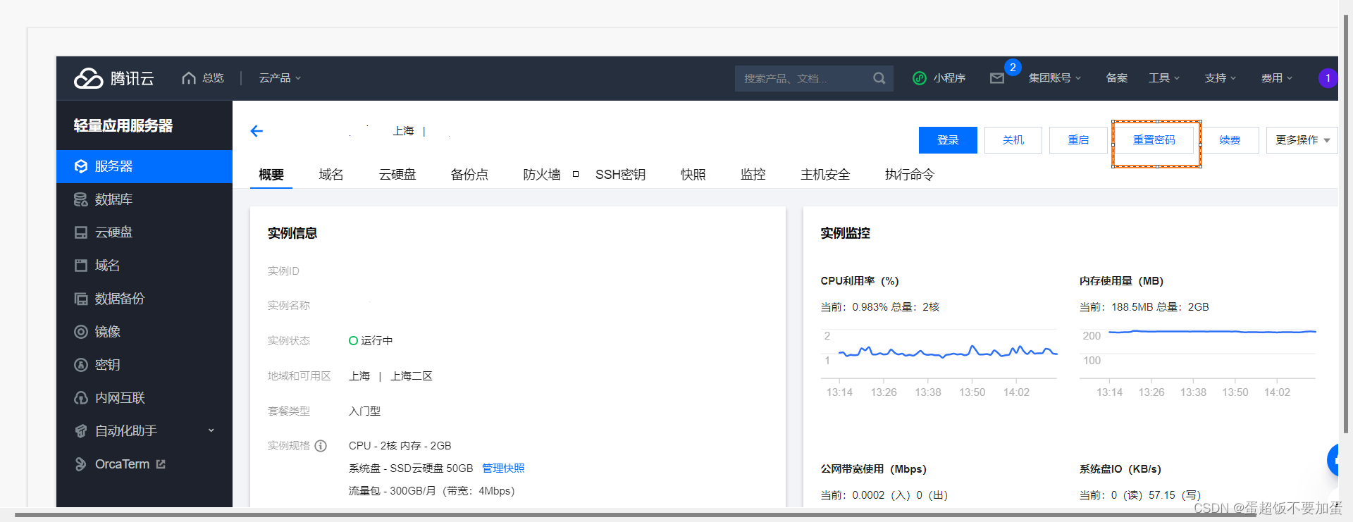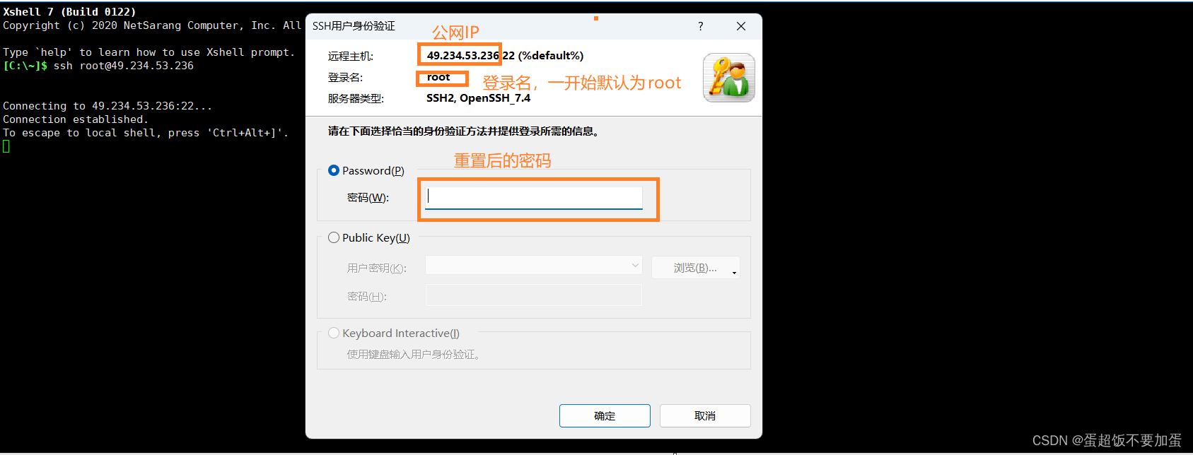 8.记住自己的公网IP和重置后的密码,以能远程登录云服务器
