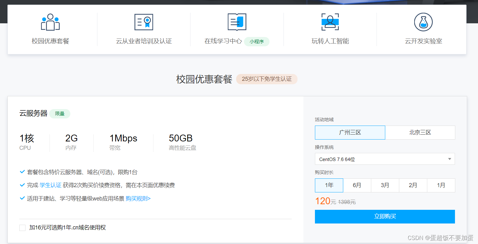 通过学生认证后,有些云服务器只需要10元左右一个月(强烈推荐)