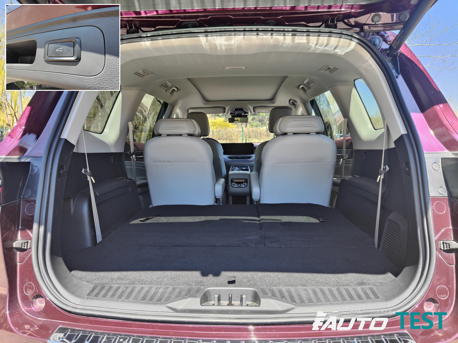 同时为了照顾举家出行时复杂的用车需求,领裕还设置了22处内部储物空间,并且将备胎挪到了车尾底部。当第三排座椅有乘客乘坐时,车厢后部还能放下登机箱和随身行李,可以保障满载六人时基本的储物装载和出行功能。而在第三排座椅放倒时,能形成一个较大的后备箱空间,露营设备、自行车、儿童婴儿车等等大体积物件也能轻松装下。
