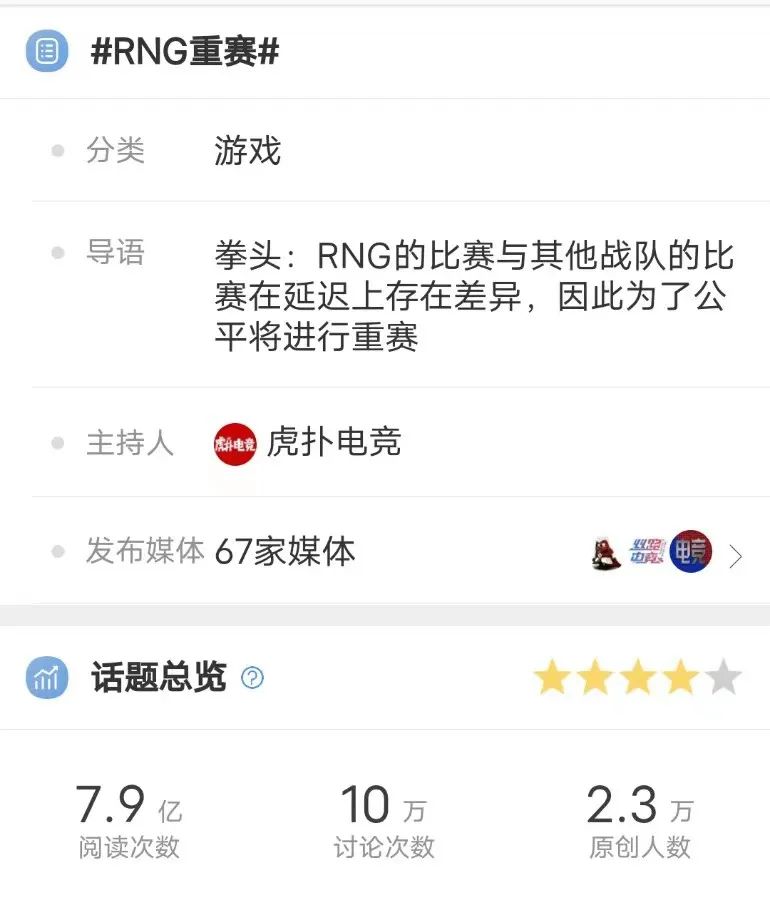 此次RNG重赛,冲突点主要在于网络延迟。在韩国赛事现场的网络延迟普遍高于在上海远程参赛的RNG战队,电竞赛场上,胜负向来在电光火石间便已见分晓,几毫秒在电竞赛场上可以决定一场竞技的生死,而官方出于公平考虑决定让RNG重赛,意味着以3-0领先的RNG战队战绩清零,需要重头再来。此外,RNG在自家基地作战以及比赛场地无裁判等情况也遭到许多质疑。对RNG而言,这无疑是内忧外患,一边要克服重赛带来的心理压力和精神消耗,一边承受着外界的舆论热议。