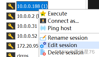 1、在左边右键我们的远程连接,选择Edit session