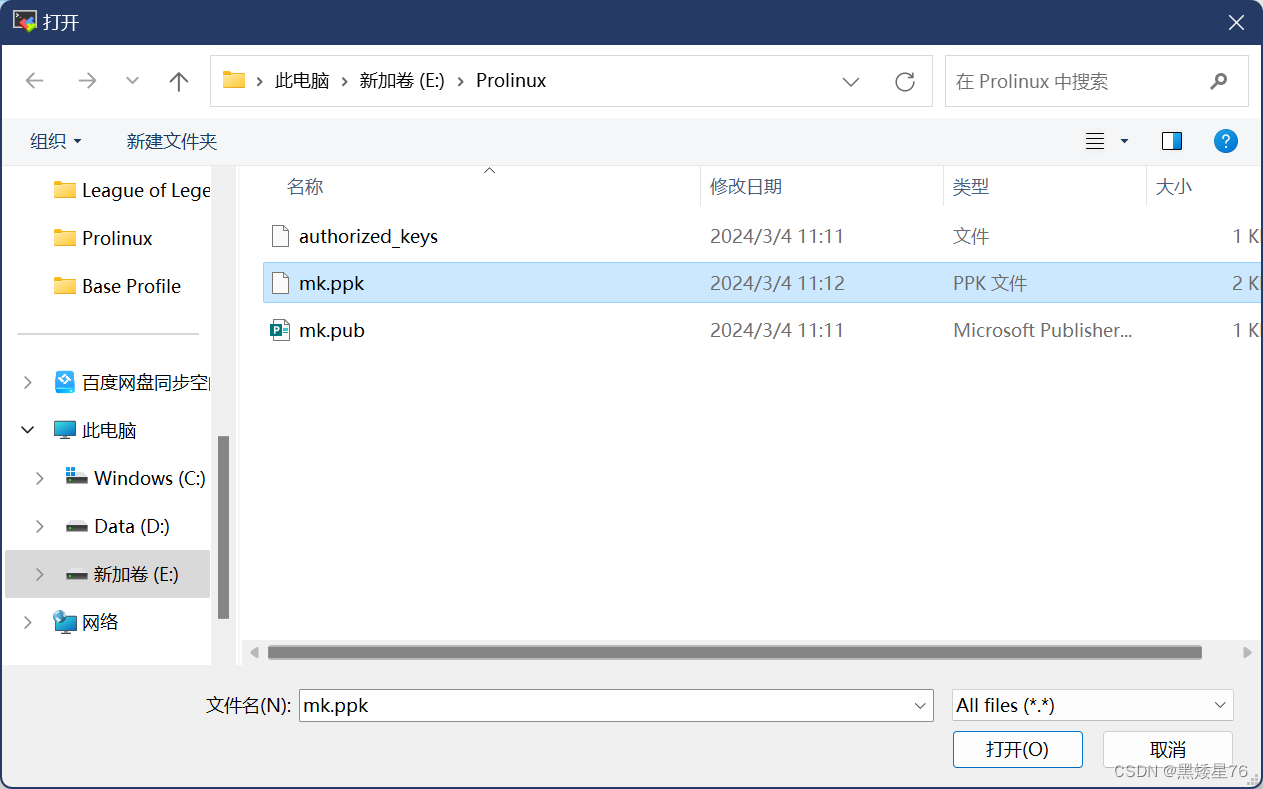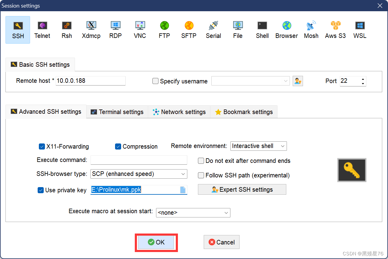 ** mk.ppk**:私钥文件,在MobaXterm的Session属性中启用之后,连接远程主机生效