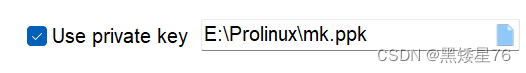 3、勾选Use private key 并且点击蓝色图标上传prolinux文件夹中的mk.ppk文件
