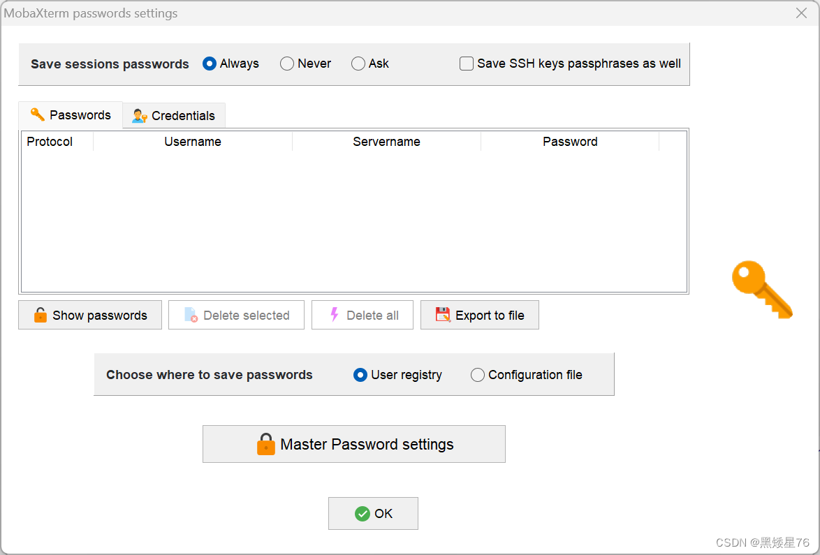 2、选择MobaXterm passwords management