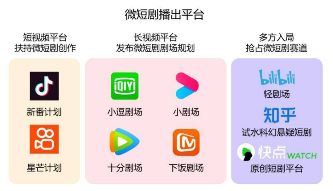 近两年来,伴随着微短剧的走热,越来越多平台参与其中,这里面最为主要的便是以抖音、快手为代表的两大短视频巨头,以及腾讯视频、优酷、芒果TV等长视频平台。