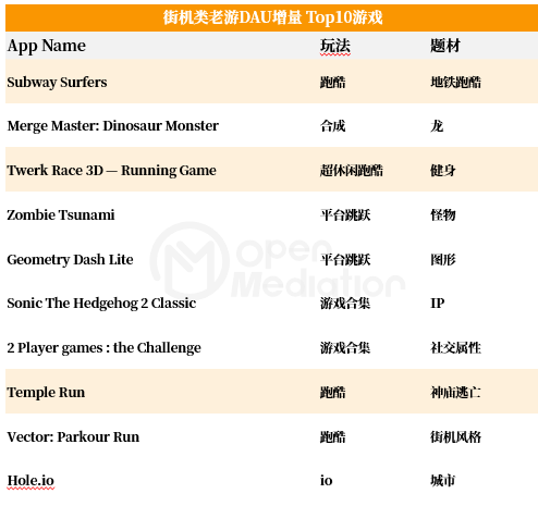 - 跑酷玩法是主要增长点,包括在市场上“超长待机”的老游《Subway Surfers》(地铁跑酷)、《TempleRun》(神庙逃亡),以及超休闲向的《Twerk Race 3D — Running Game》。