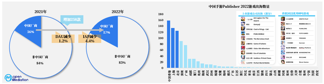 激战:虽然2022年中国出海游戏的数量变多,但出海产品的DAU和IAP整体缩水,这说明竞争只增不减。
