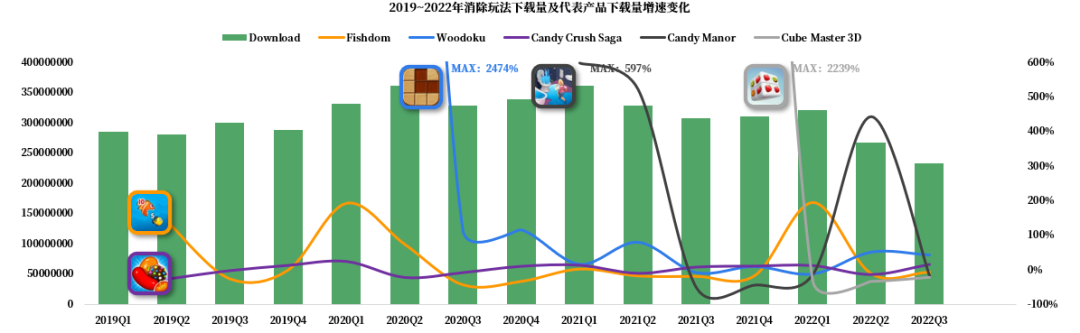 另一方面,三消、SLG、RPG、Rougulike这四大传统玩法的“翻红”成为2022年中国游戏厂商抢夺垂直赛道的亮眼表现。
