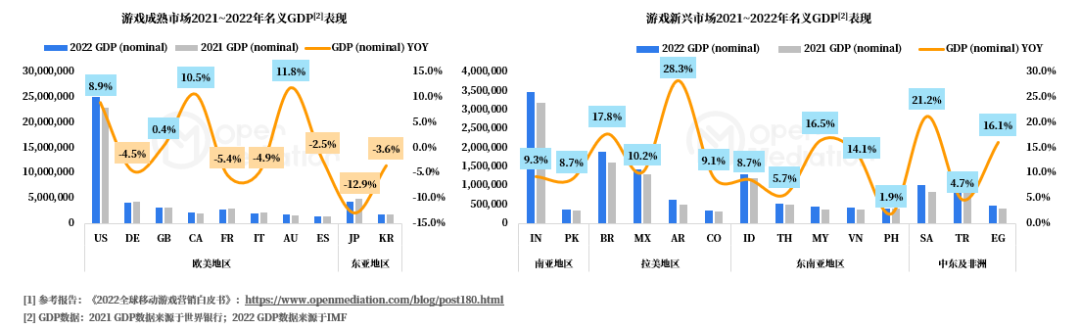- 复苏:游戏新兴市场整体从2022年开始进入疫情后的经济快速复苏期,其中,巴西、墨西哥、阿根廷、马来西亚、越南、沙特、埃及的名义GDP增速均超10%,拉动大盘的增长。